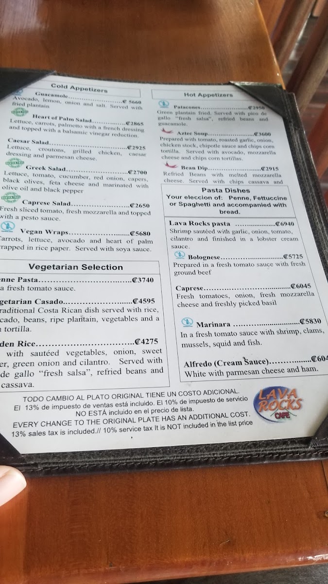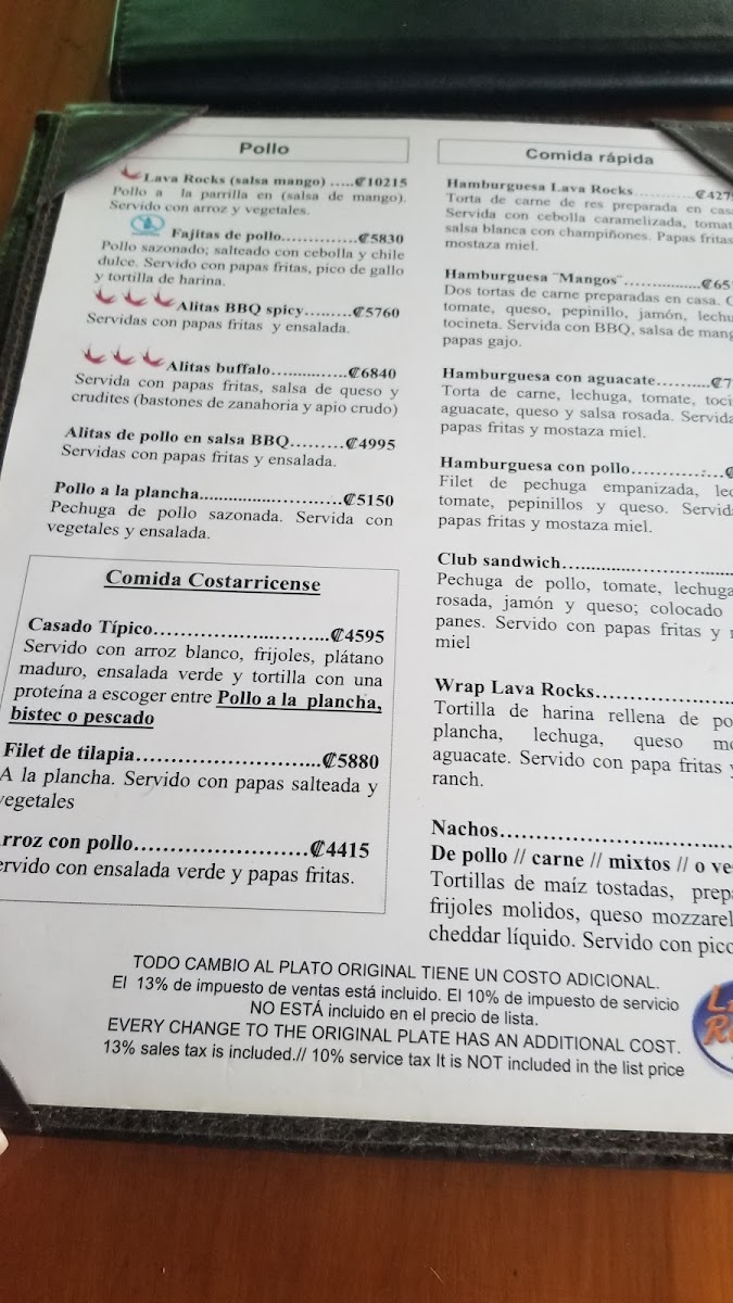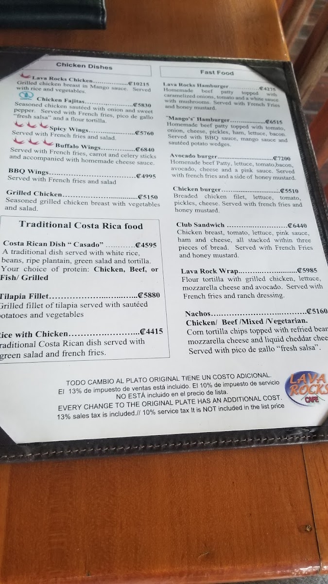 Welcome to Lava Rocks Restaurante, nestled in the heart of La Fortuna, Costa Rica. This culinary gem offers a delightful menu that showcases a blend of local flavors and fresh ingredients, with seafood as their specialty. Patrons rave about the mixed seafood ceviche, which combines fish, shrimp, and octopus for an exhilarating taste experience that promises to impress. The casado plates and Lava Chicken are crowd favorites, celebrated for their generous portions and satisfying flavors.
